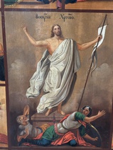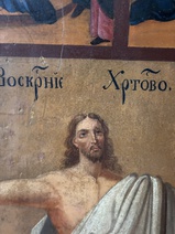 Антикварная Храмовая икона Воскрсение Христово с двунадесятыми Праздниками, 19 век