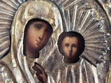 Икона Казанская Пресвятая Богородица в латунном окладе, 19 век