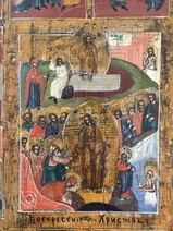 Антикварная старинная икона Воскресение Христово - двунадесятые праздники 19 век
