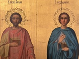 Икона Храмовая святые целители Косма и Дамиан - 19 век