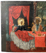 Антикварная Храмовая Икона Пресвятая Богородица на престоле начало 18 века Экспертиза Музей