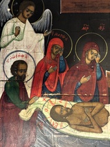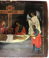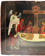 Икона «Положение во Гроб» изображает один из ключевых эпизодов Страстной седмицы — погребение Иисуса Христа после распятия. Сюжет основан на евангельских текстах и отражает момент, когда тело Христа, снятое с креста, помещают в гробницу.
