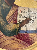 дерево, левкас, цировка по левкасу, сусальное золото, письмо темперными красками, размер иконы в диаметре 21,5 см