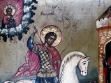 Старинная икона святой Георгий Победоносец с приписными святыми Василием, Мароном, Харлампием и Нифонтом?