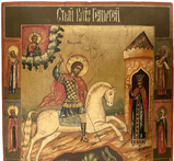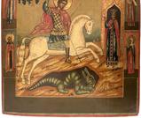 Икона святой Георгий Победоносец с приписными святыми 19 век